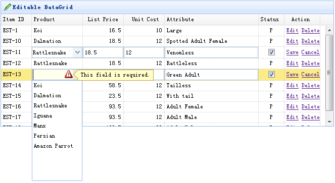 title:'Editable DataGrid',