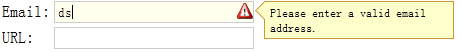 | validType | string,array | 定义字段的验证类型,比如 email、url,等等。可能的值: 1、验证类型字符串,应用单个验证规则。 2、验证类型数组,应用多个验证规则。单个字段上的多个验证规则自版本 1.3.2 起可用。 代码实例: <input class="easyui-validatebox" data-options="required:true,validType:'url'"> <input class="easyui-validatebox" data-options=" required:true, validType:['email','length[0,20]'] "> |