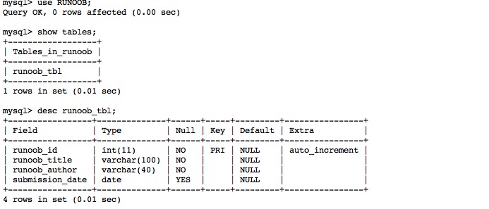 mysql> CREATE TABLE runoob_tbl(