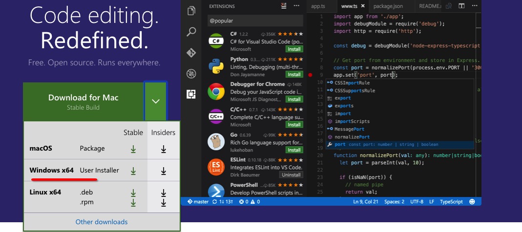 本章节主要介绍 Visual Studio Code,Visual Studio Code 是一个可以运行于 Mac OS X、Windows 和 Linux 之上的,针对于编写现代 Web 和云应用的跨平台源代码编辑器,由 Microsoft 公司开发。